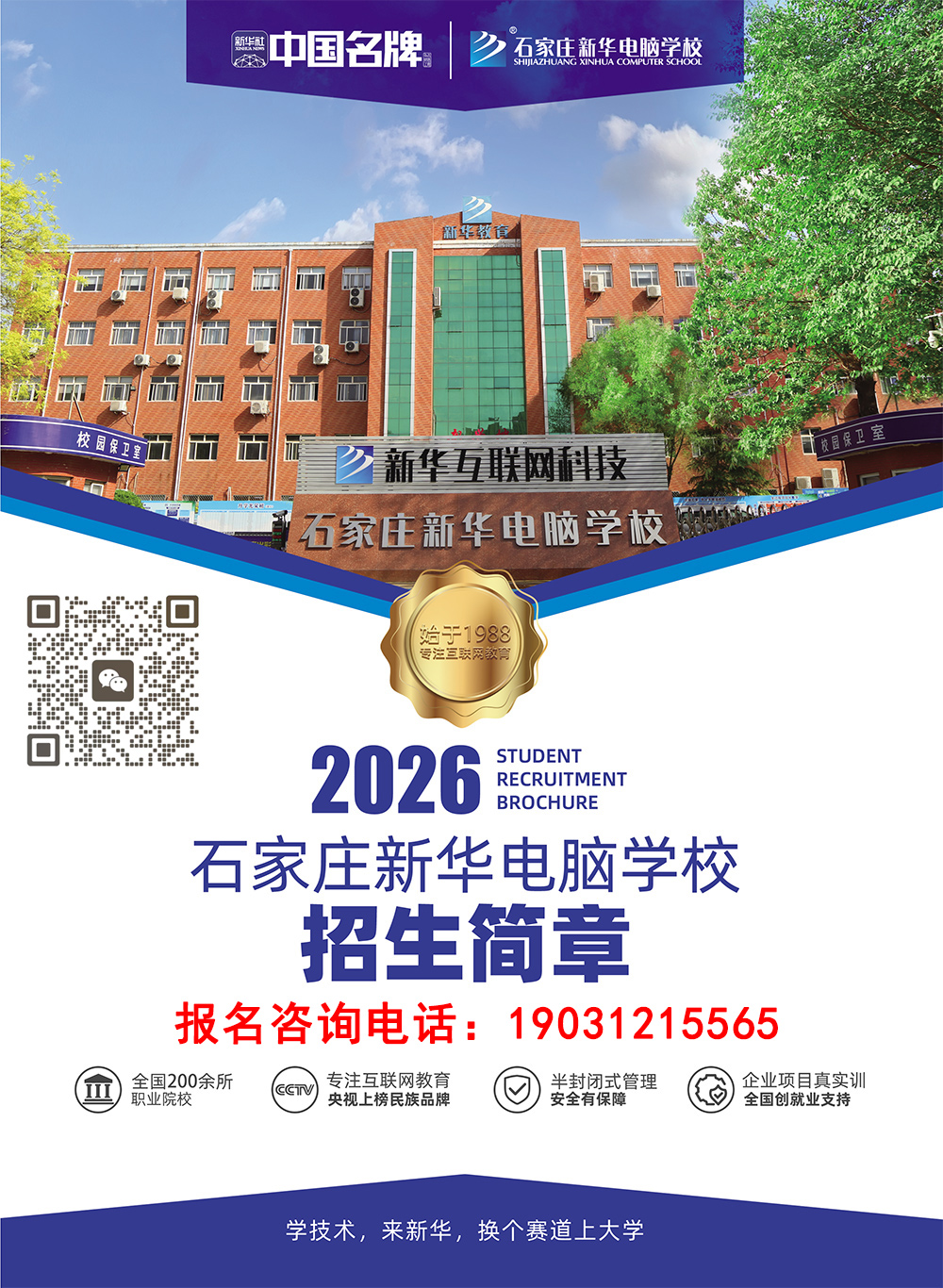 2026招生报名了,石家庄新华电脑学校紧跟人才市场需求以及企业岗位需求,以学生兴趣点为出发点,涵盖游戏动漫、电子商务、无人机、美妆、平面设计、三维设计、智能制造、软件开发、电子竞技等互联网IT相关专业,帮助学生学好一技之长,获得更好的未来。